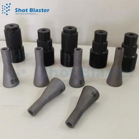 A Sandblasting Nozzle life is a very hard for one to predict accurately because of the many features such as the vast range of abrasive media being used, their sizes, their different shape, their hardness, varying air pressure coming at the nozzle for sandblasting, The Sandblasting nozzle tips bore size and blasting nozzle mouth diameter during blast hose life, methods of abrasive media cut-off or machine shut-down. Sandblasting Nozzle size is of varying shapes used to blast different patterns on the blasting surface.