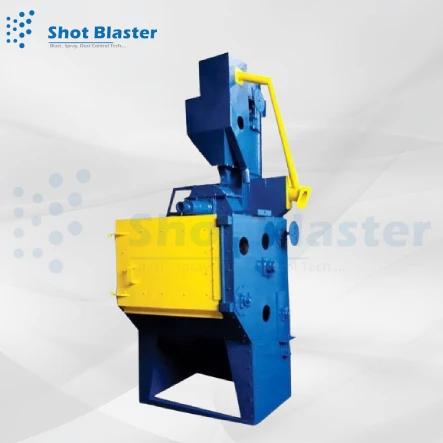 The door of the tumblast type shot blasting machine is opened and components are loaded on to the endless rubber conveyor belt of the tumblast shot blasting machine manually/ with loader arrangement. Then the door is being closed and shot blasting operation takes place. The abrasive material with high velocity falls upon the tumbling components and cleans them. The rubber conveyor belt or the metallic conveyor belt tumbles the components gently and ensures appropriate exposure of the components. After the cleaning blast cycle is once over, the blast wheel is shut off and doors are opened. The components are unloaded on the trolley by moving the conveyor belt in the reverse direction.