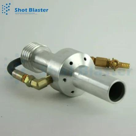Water injection/blasting nozzle also known as wet blasting nozzle. The user can achieve optimal air/water atomization by wetting & drying sand blasting machine using an adaptable water spread & flexible Venturi air injector harbor on a water injection nozzle for sandblasting accompanied by an aluminum jacket & a Tungsten Carbide bore. By allowing water moisture droplets to adhere to dust & disparage it to the basis, this wet blasting nozzle minimizes quantity of dust produced during blasting, making it "Dustless." These nozzles, which are also known as wet blasting nozzles, maintain contractor incorporation to avoid transit incorporating problems on the project site. If you require to change your 50mm cable to a 1-1/4′′ or 3/4′′ thread, adapters are available. When threading, assemble sure you're prepared to blast by looking at sand blasting nozzle holders below! A washer is included accompanied by every nozzle for easy assembly. The water connection line & shutdown valve with 3/8′′ barb are also included with your nozzle.